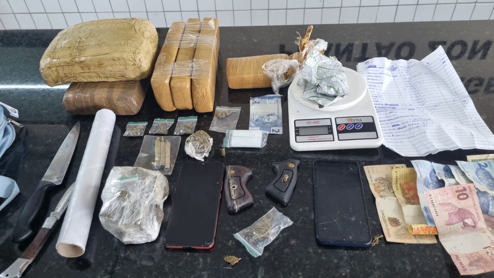 No local, os policiais encontraram 4,5 kg de maconha em tabletes, 30 g de haxixe, uma balança de precisão, dinheiro em espécie, uma munição calibre 380, diversos sacos plásticos tipo zip lock e uma motocicleta com sinais de adulteração. O flagrante reforça o trabalho integrado das forças de segurança no combate ao crime organizado.