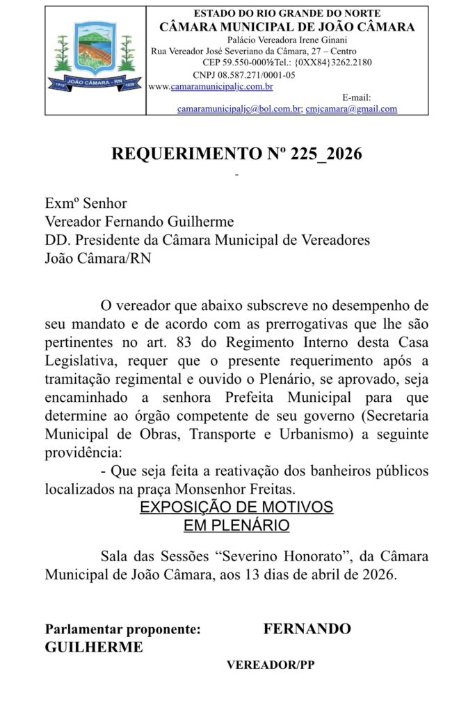 O requerimento reforça o compromisso do parlamentar com as demandas da comunidade, buscando melhorias que impactem diretamente na qualidade de vida dos cidadãos de João Câmara.